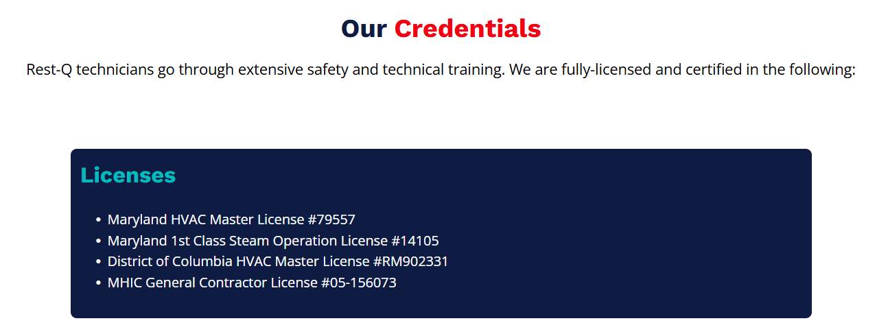 Rest-Q’s diverse team of HVAC professionals are highly-trained and passionate about what they do.